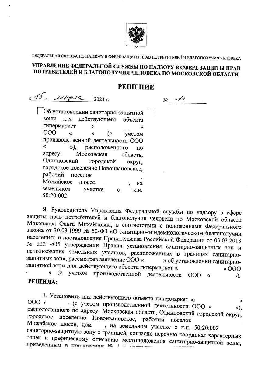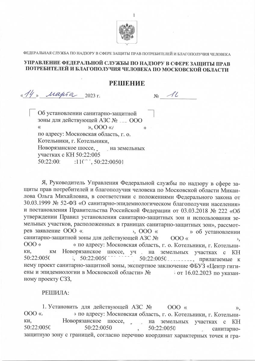 Сотрудники ООО "ЭкоТехПром групп" успешно согласовали и получили положительные Решения, от главного санитарного врача Московской области, по проектам санитарно - защитной зоны (СЗЗ) для действующих объектов Федеральной сети АЗС и Федеральной сети гипермаркетов.