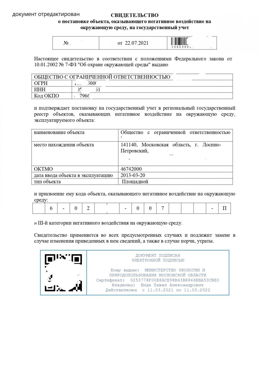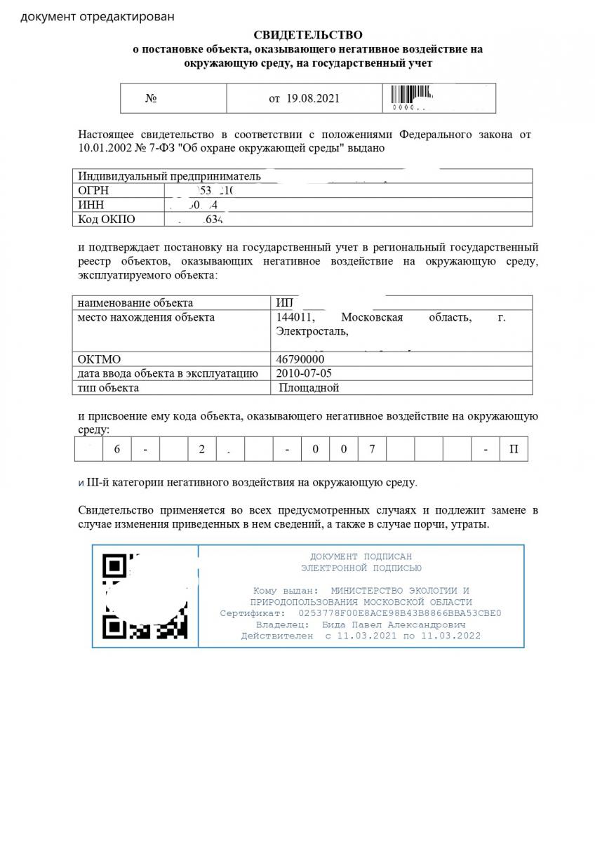 Получение 4-х свидетельств о постановке объекта НВОС на государственный учет!