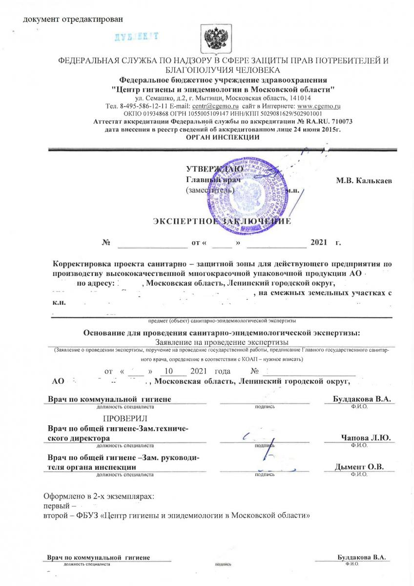 Специалистами ООО "ЭкоТехПром групп" проведена корректировка проекта СЗЗ для действующего предприятия по производству высококачественной многокрасочной упаковочной продукции. Экспертное заключение успешно получено!