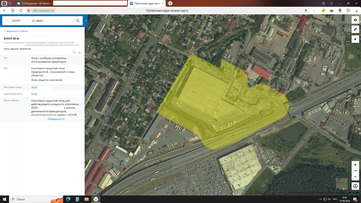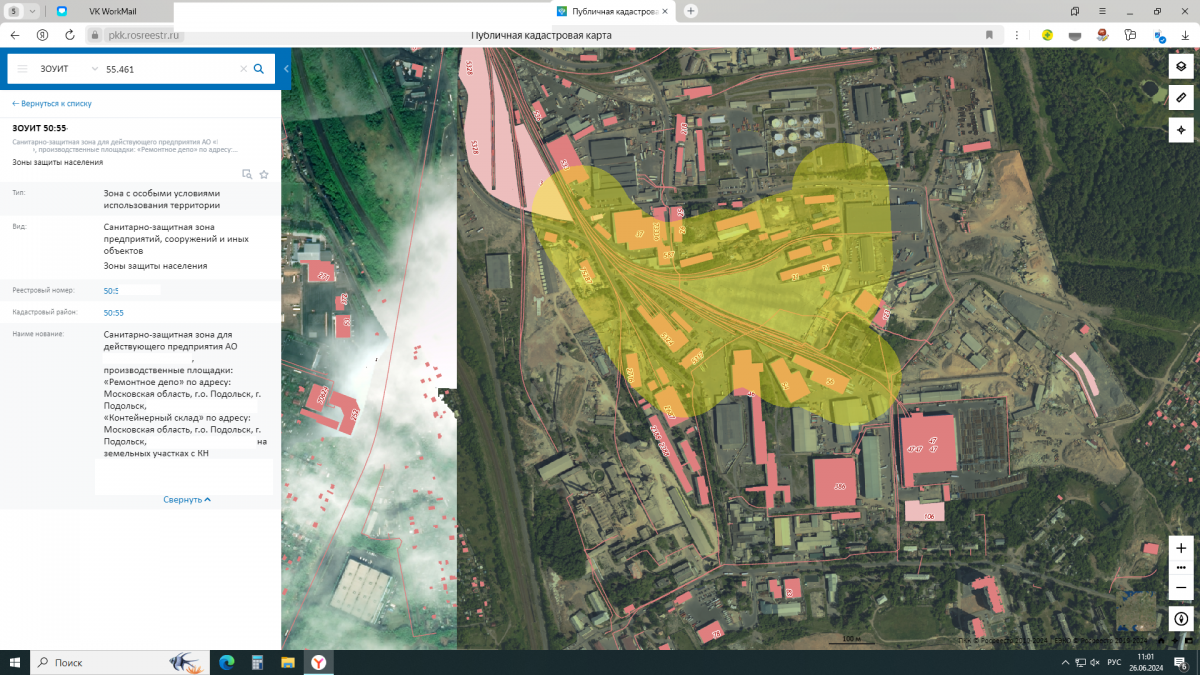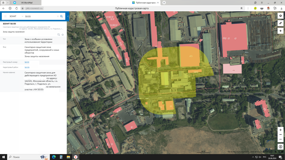 4. Скриншот с публичной кадастровой карты с информацией о СЗЗ Закзчика и письмо от Росреестра о постановке СЗЗ на учет.