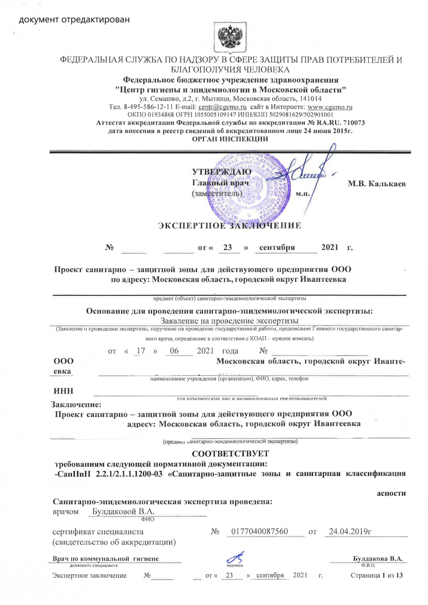 Очередной успех! Нашими специалистами получены экспертные заключения на соответствие проектов санитарно-защитной зоны для действующих предприятий требованиям нормативной документации.